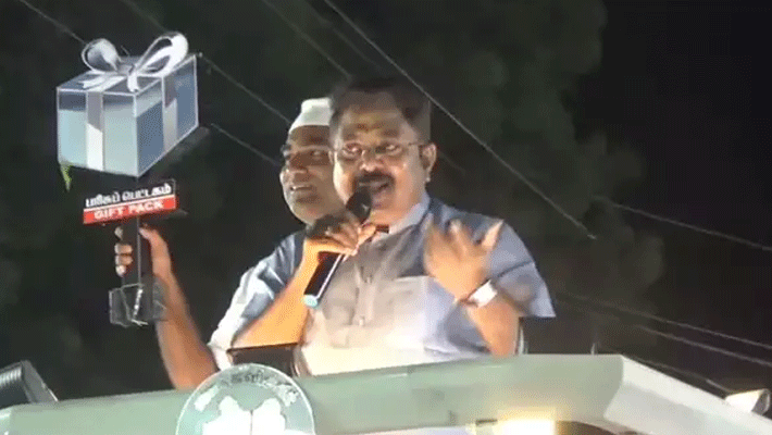 தற்போது வேலூர் நாடாளுமன்றத் தேர்தலில் 18 சுயேட்சைகள் உள்பட 28 பேர் களத்தில் இருக்கிறார்கள். திமுக, அதிமுக, நாம் தமிழர் கட்சிகளைத் தவிர்த்து பிற வேட்பாளர்களுக்கு சுயேட்சை சின்னங்களை தேர்தல் ஆணையம் ஒதுக்கியுள்ளது. இதில் சுகுமார் என்ற சுயேட்சை வேட்பாளருக்கு பரிசு பெட்டகம் சின்னத்தை தேர்தல் ஆணையம் ஒதுக்கியுள்ளது. கடந்த நாடாளுமன்றத் தேர்தலில் சுயேட்சை வேட்பாளர்களாகவே அமமுகவினர் கருதப்பட்டார்கள். எனவே சுயேட்சை சின்னத்திலிருந்துதான் பரிசு பெட்டகத்தை தேர்தல் ஆணையம் ஒதுக்கியது. தற்போது அமமுக போட்டியிடததால், சுயேட்சை சின்னம் பட்டியலில் பரிசு பெட்டகம் இருந்தது. அதிலிருந்துதான் சுயேட்சை வேட்பாளருக்கு பரிசு பெட்டகத்தை தேர்தல் ஆணையம் ஒதுக்கியுள்ளது. தேர்தலில் தினகரன் கட்சியினர் போட்டியிடாவிட்டாலும், அவரால் பிரபலமான பரிசுப் பெட்டகம் சின்னம் தேர்தலில் போட்டியிடப் போகிறது.