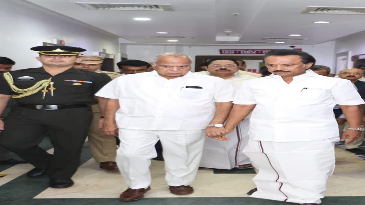 திமுக தலைவர் கருணாநிதியின் உடல் நலம் குறித்து காவேரி மருத்துமனைக்குச் சென்று ஆளுநர் பன்வாரிலால் புரோகித் ,திமுக செயல் தலைவர் மு.க.ஸ்டாலினிடம் விசாரித்தார்.