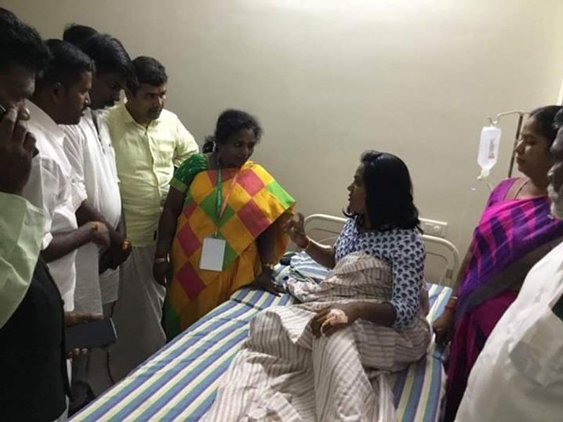 மதிமுக தொண்டர்களால் தாக்கப்பட்டு திருப்பூர் தனியார் மருத்துவமனையில் சிகிச்சை பெற்று பாஜக நிர்வாகி சசிகலாவை அக்கட்சியின் தேசிய செயலாளர் எச்.ராஜா நேரில் சந்தித்து நலம் விசாரித்தார்.