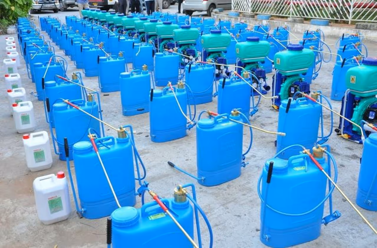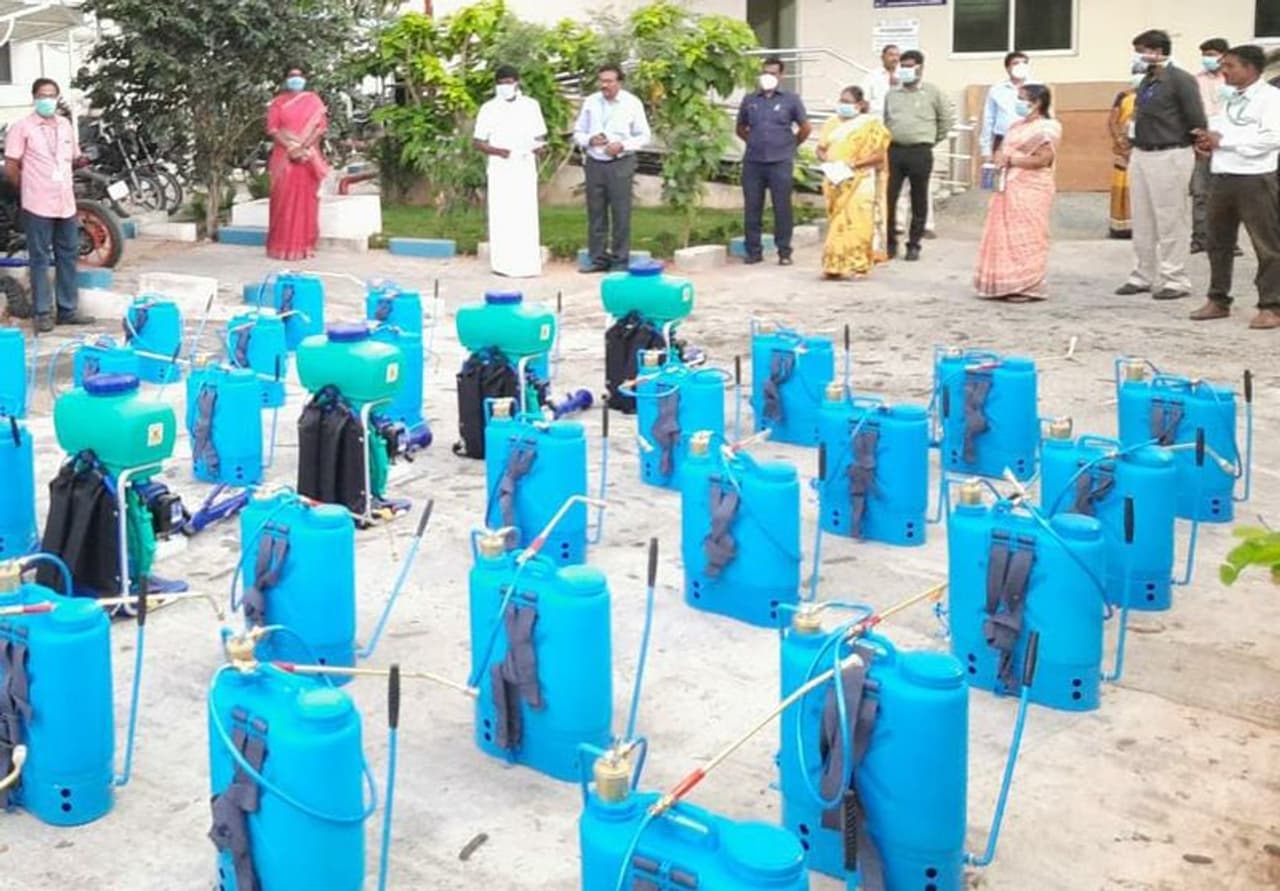 லைசால் அண்ட் ஹைட்ரோ குளோரைட் கிருமி நாசினி தெளிக்க 5000 எண்ணிக்கையிலான Knapsack – Sprayer மற்றும் 1,500 எண்ணிக்கையிலான Power - Sprayer கருவிகள் என சுமார் 43 சுகாதார மாவட்டங்களுக்கும் வழங்கியுள்ளார்