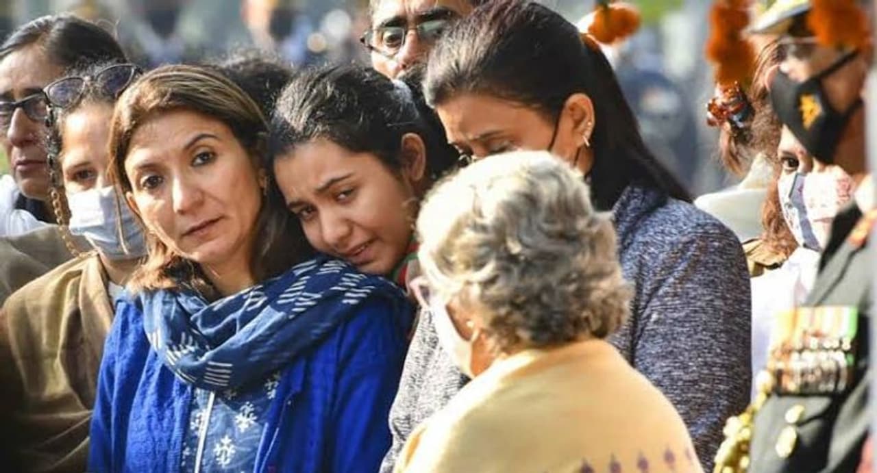 ஹெலிகாப்டர் விபத்தில் உயிரிழந்த துணிச்சலான ராணுவ அதிகாரி பிரிகேடியர் லக்விந்தர் சிங் லிடரின் உடல் பெரார் சதுக்கத்தில் உள்ள மயானத்தில் தகனம் செய்யப்பட்டது. மிகவும் உணர்ச்சிகரமான சூழ்நிலையில், பிரிகேடியரின் மனைவி கீதிகா மற்றும் மகள் ஆஷ்னா லிடர் ஆகியோர் கண்ணீர் மல்க அவருக்கு 'இறுதி அஞ்சலி செலுத்தி பிரியாவிடை கொடுத்தனர். தனியார் செய்தி நிறுவனம் வெளியிட்டுள்ள வீடியோவில், பிரிகேடியரின் மனைவி கீதிகா லிடர் தேசியக் கொடியால் போர்த்தப்பட்ட தனது கணவரின் சவப்பெட்டியின் முன் தலை குனிந்து அதை முத்தமிடுவதைக் காண முடிகிறது. பிரிகேடியர் எல்.எஸ்.லிடரின் மகள் ஆஷ்னாவும் தாயுடன் இருந்து தந்தையின் உடலுக்கு ரோஜா மலர்தூவி அஞ்சலி செலுத்தனர். அப்போது பிரிகேடியரின் மனைவி, 'நாம் அவர்களுக்கு அழுது கொண்டு அல்ல புன்னகையுடன் விடைகொடுக்க வேண்டும்' என்று சிரித்துக் கொண்டே கூறினார். நான் ஒரு ராணுவ வீரரின் மனைவி, இது ஒரு பெரிய இழப்பு என்று அப்போது அவர் உணர்சிவயத்தின் மிகுதியில் கூறினார். அவரின் இந்த பேச்சு பலரையும் மெய்சிலிர்க்க வைத்துள்ளது.