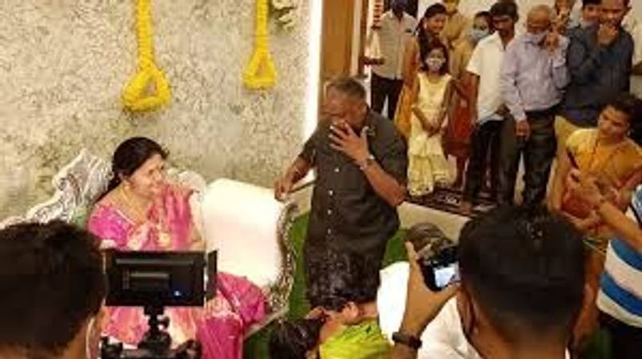 கர்நாடகாவின் கோப்பாலா மாவட்டத்தில் உள்ள பிரபல தொழிலதிபர், புதிதாக வீடு கட்டி அதற்குப் புதுமனைப் புகுவிழா நடத்தியுள்ளார். அந்த நிகழ்ச்சியில் தன் மனைவியின் நினைவாக, அவரைப் போன்ற ஒரு சிலையை உருவாக்கியுள்ளார். இதைப் பார்த்த உறவினர்கள் அனைவரும், இன்ப அதிர்ச்சியில் உறைந்துள்ளனர்.தன் மனைவி மாதவிக்குப் பிடித்தது போல அந்த வீட்டை உருவாக்கியுள்ளார் தொழிலதிபர் ஸ்ரீநிவாஸ் குப்தா. துரதிர்ஷ்டவசமாக மூன்று ஆண்டுகளுக்கு முன்னர் தன் மனைவியை, கார் விபத்தில் பறிகொடுத்தார். இருப்பினும் அவர் நினைவாக, தன் அன்பை சிலை செய்து வெளிப்படுத்தியுள்ளார் குப்தா. நிகழ்ச்சியின் போது, வீட்டின் நடுவில் பிங்க் வண்ணத்தில் புடைவை கட்டி, சிரித்த நிலையில் மாதவி அமர்ந்திருப்பது போன்றே காட்சியளித்தது அந்தச் சிலை.