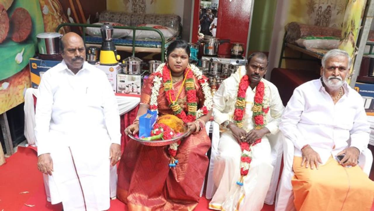 முன்னாள் முதல்வர் கருணாநிதியின் நூற்றாண்டு விழாவையொட்டி சென்னை பாரிமுனையில் உள்ள ராஜா அண்ணாமலை மன்றத்தில் 20 ஜோடிகளுக்கு திருமணம் நடத்தி வைக்கும் நிகழ்ச்சி நடைபெற்றது. இதில், அமைச்சர் எ.வ. வேலு கலந்து கொண்டு ஜோடிகளுக்கு திருமணம் நடத்தி வைத்தார்.