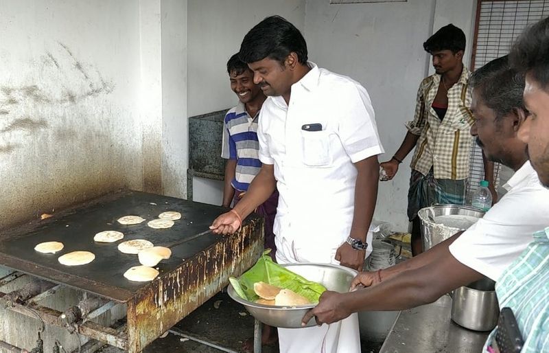 அமைச்சரின் இந்த பொறுப்பான செயலுக்கு அங்கிருக்கும் மக்கள் நன்றி தெரிவித்தனர். அதுமட்டுமல்ல அந்த பகுதியில் மக்களோடு மக்களாக உணவருந்துவது தோசை சுட்டு கொடுப்பது என அமைச்சர் என்ற பந்தாவே இல்லாமல் சாதாரணமாகவே அசத்துகிறார்.