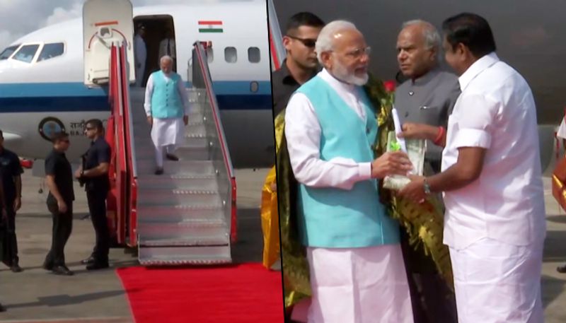 சென்னை ஐஐடி நிகழ்ச்சியில் பங்கேற்க இன்று காலை பிரதமர் மோடி சென்னை வந்தார். விமான நிலையத்தில் தமிழக முதல்வர் எடப்பாடி, துணை முதல்வர் ஓபிஎஸ், தமிழக ஆளுநர் உள்ளிட்டோர் பூங்கொத்து கொடுத்து வரவேற்றனர். பின்னர், தமிழக பாஜக சார்பில் சென்னை விமான நிலையத்தில் உற்சாக வரவேற்பு அளிக்கப்பட்டது.