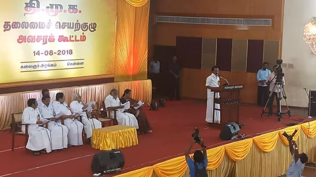 அது போல் தான் ஒரு வேளை கருணாநிதியின் உடலை அண்ணா நினைவிடத்தில் அடக்கம் செய்ய இடம் கிடைக்காமல் போயிருந்தால் என்னையும் அவர் அருகிலேயே புதைக்க வேண்டிய சூழ்நிலை உருவாகியிருக்கும் என கண்ணிர்விட்டு அழுதார். ஸ்டாலின் இந்தப் பேச்சு செயற்குழுக் கூட்டத்திற்கு வந்திருந்தவர்களை நெகிழ்ச்சி அடையச் செய்தது