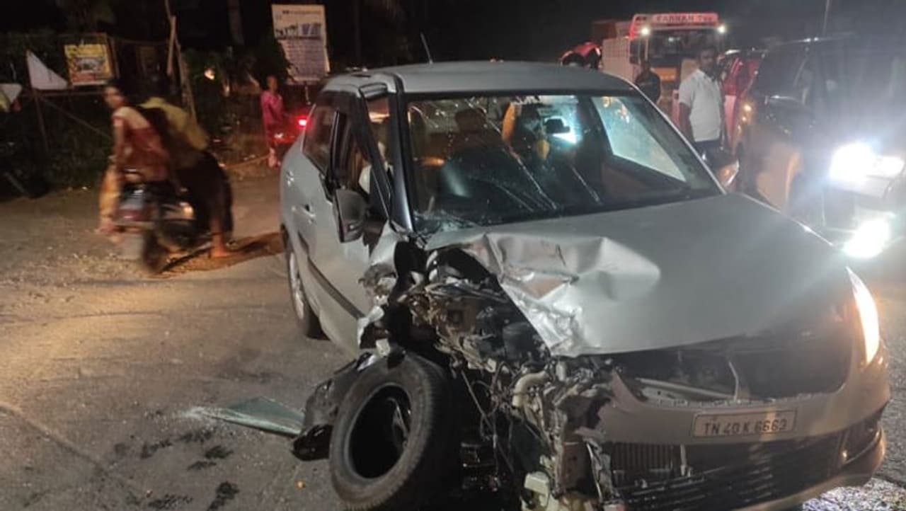 திருப்பூர் மாவட்டம் பல்லடம் செந்தோட்டம் பகுதியை சேர்ந்த தம்பதி ஸ்ரீதர், கிருத்திகா. இவர்கள் இருவரும் காரில் கோவை மாவட்டம் மேட்டுப்பாளையம் வந்து விட்டு மீண்டும் ஊர் திரும்பி கொண்டிருந்தனர். அப்போது, அன்னூரில் இருந்து மேட்டுப்பாளையம் நோக்கி மற்றொரு காரில் கணவன், மனைவி மற்றும் இரு குழந்தைகளும் வந்து கொண்டிருந்தனர்.