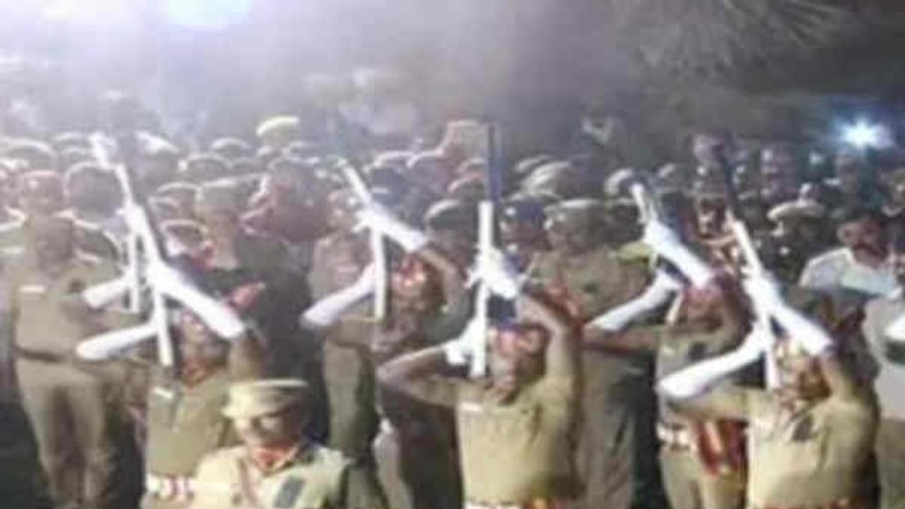 பின்னர் போலீசார் துப்பாக்கியை ஏந்தியபடி அணிவகுப்பு நடத்தி இசை முழக்கத்துடன் மரியாதை செலுத்தினர்.