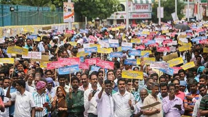 3 ஆயிரத்து 500 தொடக்கப்பள்ளிகளைஉயர்நிலைமற்றும்மேல்நிலைப்பள்ளிகளுடன்இணைக்கும்முடிவினையும், 3 ஆயிரத்து 500 சத்துணவுமையங்களைமூடும்முடிவினையும்ரத்துசெய்யவேண்டும்என்பதுஉள்படபல்வேறுகோரிக்கைகளைவலியுறுத்திஜாக்டோ-ஜியோஅமைப்புசார்பில்கடந்த 22-ந்தேதிமுதல்தமிழகம்முழுவதும்காலவரையற்றவேலைநிறுத்தபோராட்டம்தொடங்கியது. தொடர்ந்து 5 ஆவது நாளாக வேலை நிறுத்தப் போராட்டம் நடைபெற்று வருகிறது.
