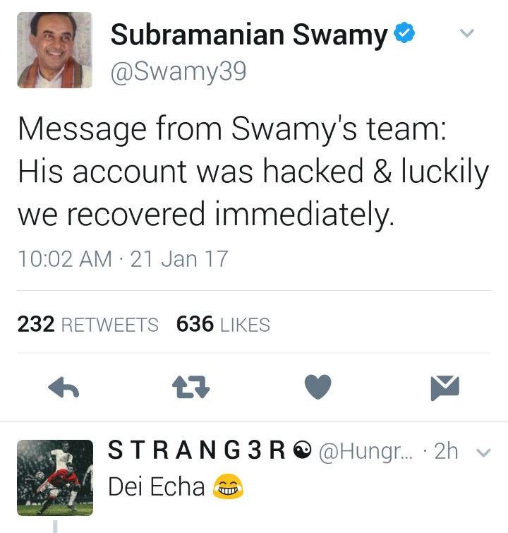இந்நிலையில் சு.சாமியின் ட்விட்டர் பக்கம் தற்போது முடக்கப்பட்டதாக தகவல் வந்துள்ளது.