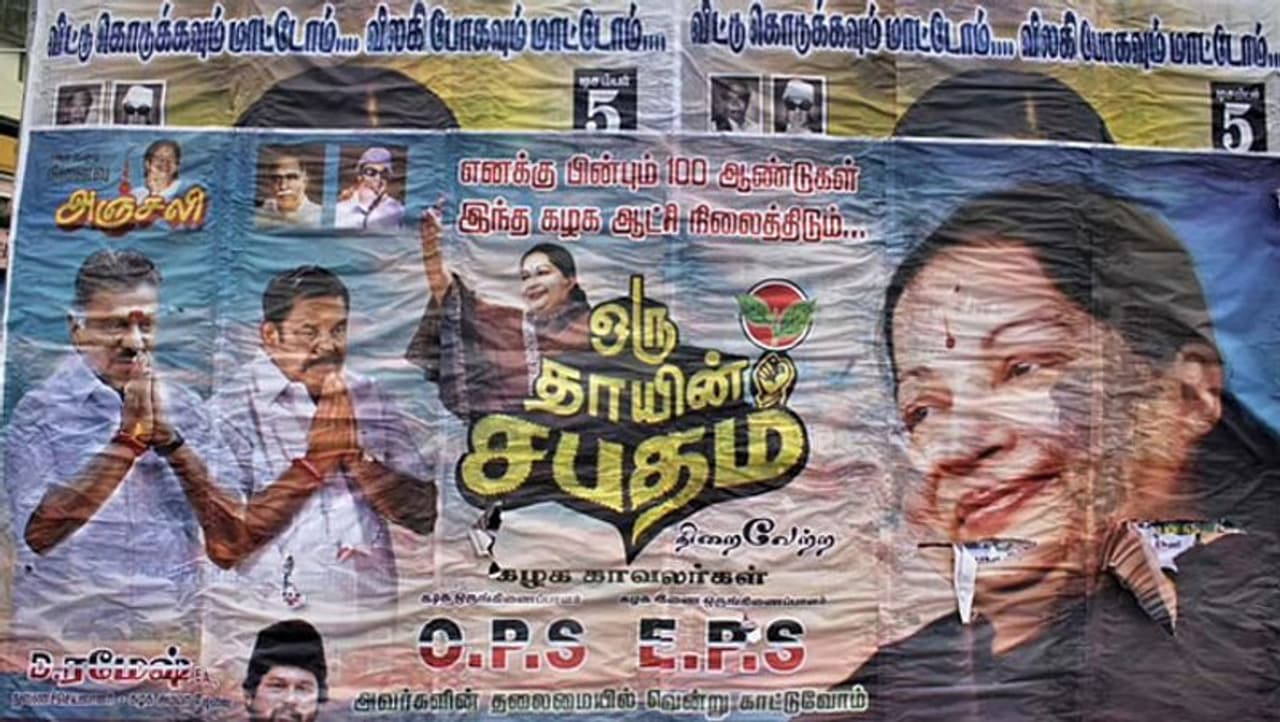 அமமுகவின் இந்த போஸ்டர்கள் மீது அதிமுகவின் `ஒரு தாயின் சபதம் என்ற போஸ்டர்கள் ஒட்டப்பட்டுள்ளது. அமமுகவின் கருத்தை மறைக்கும் பொருட்டு, அதிமுகவினர் போஸ்டர்கள் ஒட்டியதாகவே கூறப்படுகிறது.