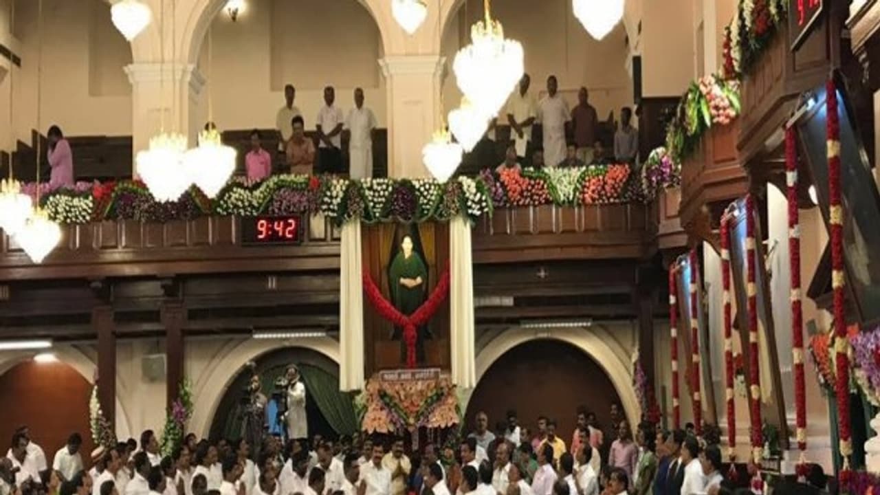 6 முறை தமிழக முதல்வராக இருந்த ஜெயலலிதா, கடந்த 2016ம் ஆண்டு டிசம்பர் 5ம் தேதி உயிரிழந்தார். இந்நிலையில், சட்டமன்ற அரங்கில் ஜெயலலிதாவின் முழு உருவப்படத்தை திறக்க வேண்டும் என அதிமுக எம்.எல்.ஏக்கள் கோரிக்கை விடுத்தனர். இதையடுத்து ஜெயலலிதாவின் உருவப்படம் அமைப்பதற்கான பணிகள் நடைபெற்றன.
