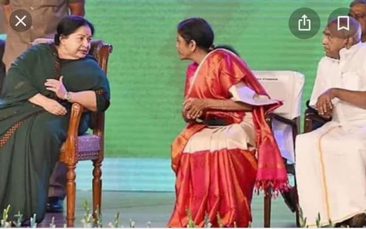 கீழே உள்ள படத்தில் இருக்கும் உண்மை தன்மை தெரியும், பார்பனரான அம்மா, சக பார்பனரான, சக பெண்மணியான தற்போதைய நிதியமைச்சர் நிர்மலா சீதாராமனை அமர வைத்திருப்பதும், தாழ்த்தப்பட்டவரான, திருமாவளவனை அமர வைத்திருப்பதும். எத்தனை முறை திருமாவளவன் அவர்களுடன் கூட்டணி முறிவு ஏற்பட்டிருந்தாலும், ஒருமுறை கூட தடித்த வார்த்தை சொல்லி பேசியதில்லை அம்மா அவர்கள்.