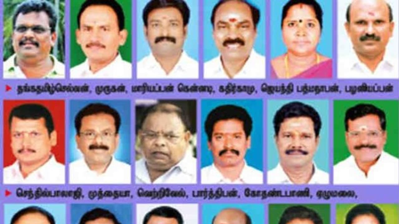 தங்க தமிழ்ச்செல்வன் - ஆண்டிபட்டி தொகுதி, ஆர்.முருகன் - அரூர், மாரியப்பன் கென்னடி - மானாமதுரை, கதிர்காமு - பெரியகுளம், ஜெயந்தி பத்மநாபன் - குடியாத்தம், பழனியப்பன் - பாப்பிரெட்டி பட்டி, செந்தில் பாலாஜி - அரவக்குறிச்சி, எஸ். முத்தையா - பரமக்குடி, வெற்றிவேல் - பெரம்பூர், என்.ஜி.பார்த்திபன் - சோளிங்கர், கோதண்டபாணி - திருப்போரூர், ஏழுமலை - பூந்தமல்லி, ரெங்கசாமி - தஞ்சாவூர், தங்கதுரை - நிலக்கோட்டை, ஆர்.பாலசுப்பிரமணி - ஆம்பூர், எஸ்.ஜி.சுப்ரமணியன் - சாத்தூர், ஆர்.சுந்தரராஜ் - ஒட்டப்பிடாரம், கே.உமா மகேஸ்வரி - விளாத்திகுளம் ஆகிய 18 எம்.எல்.ஏ.க்கள் சபாநாயகரால் தகுதி நீக்கம் செய்யப்பட்டனர்.