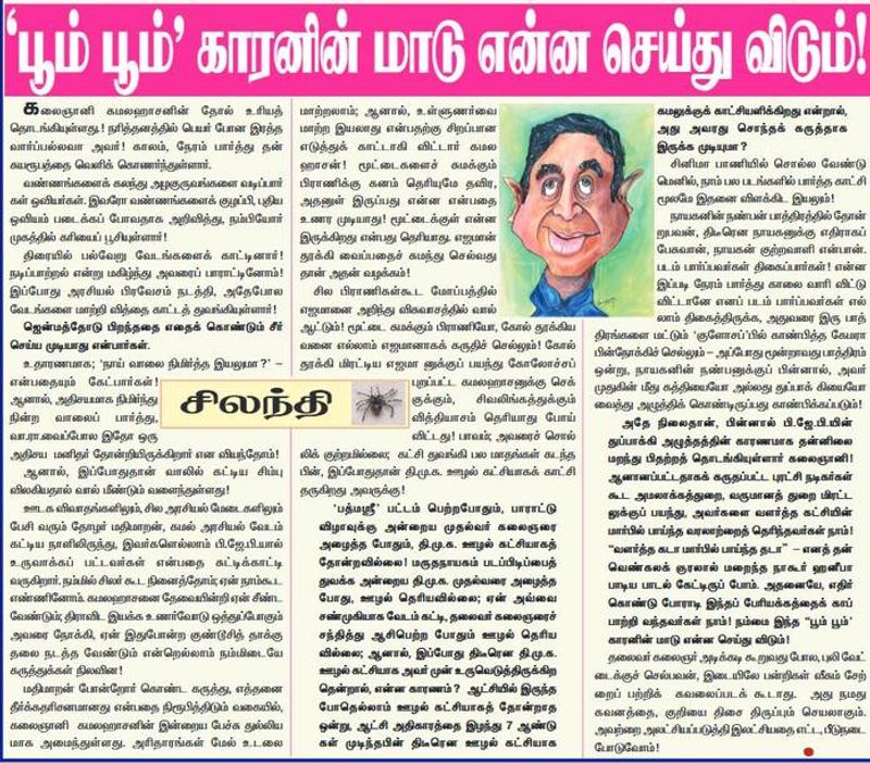 திமுகவை ஊழல் கட்சி என்று கமல்ஹாசன் விமர்சித்து வந்த நிலையில், இன்று முரசொலியில் பாஜகவின் அழுத்தத்திற்காக தன்னிலை மறந்து திமுகவை விமர்சிக்கிறார் எனமக்கள் நீதி மய்யம் தலைவர் கமலை கடுமையாக விமர்சித்து சிலந்தி என்ற பெயரில் பெரிய கட்டுரை வெளியிடப்பட்டுள்ளது. இந்த நிலையில் திருமண விழா மேடைக்கு கமல்ஹாசன் வந்தபோது, ஸ்டாலின் எழுந்து நின்று வரவேற்றார்.