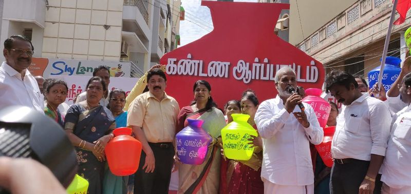இந்த நிலையில், இன்றும் தண்ணீர் பிரச்னை பல ஏரியாக்களில் இருப்பதால்,கடும் குடிநீர் பிரச்சினையை அதிமுக அரசு கண்டுகொள்ளவில்லை என சென்னை கிழக்கு மாவட்ட திமுக மற்றும் மாவட்ட மகளிரணி சார்பில் கண்டன ஆர்ப்பாட்டம் நடைபெற்றது. "கழக அரசே செய்லபடு.. தாகத்திற்கு நீர் கொடு" என்ற வாசகம் அடங்கிய காலி குடங்களை வைத்துக்கொண்டு ஆர்ப்பாட்டம் செய்தனர்.