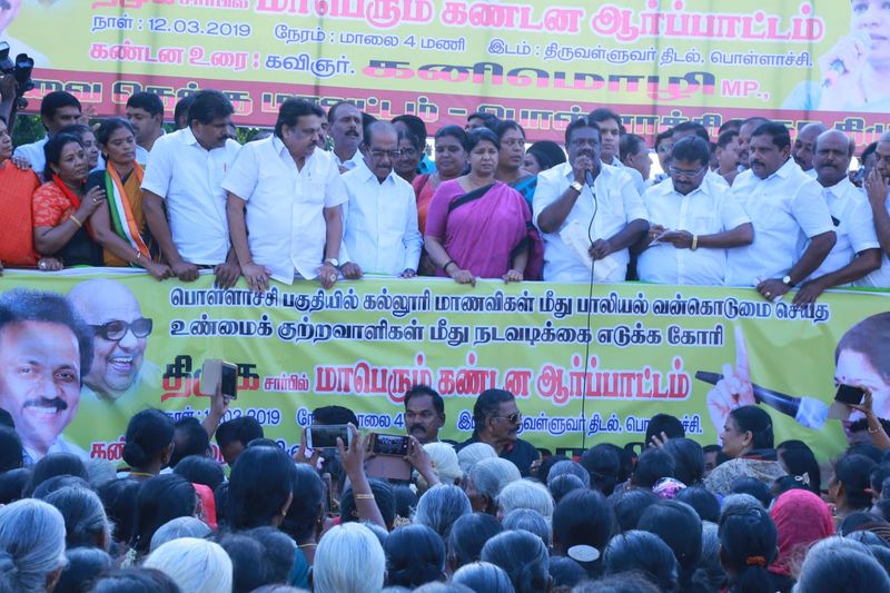 மேலும், பொள்ளாச்சி பாலியல் கொடூரம் தமிழகத்தையே தலைகுனியச் செய்துள்ளது என்றும் 7 ஆண்டுகளாக ஒரு நெட்வொர்க் இந்த கொடூரத்தை அரங்கேற்றியுள்ளது ஆனால் 4 பேர் மட்டுமே கைது என்றால் இதை நம்ப முடிகிறதா..? இதற்கு பின்னால் உள்ள மற்ற குற்றவாளிகளை உடனடியாக கைது செய்ய வேண்டும்.. மக்களுக்கு உண்மை தெரிய வேண்டும் என கனிமொழி களத்தில் இறங்கி ஆர்ப்பாட்டம் செய்து வருகிறார்.