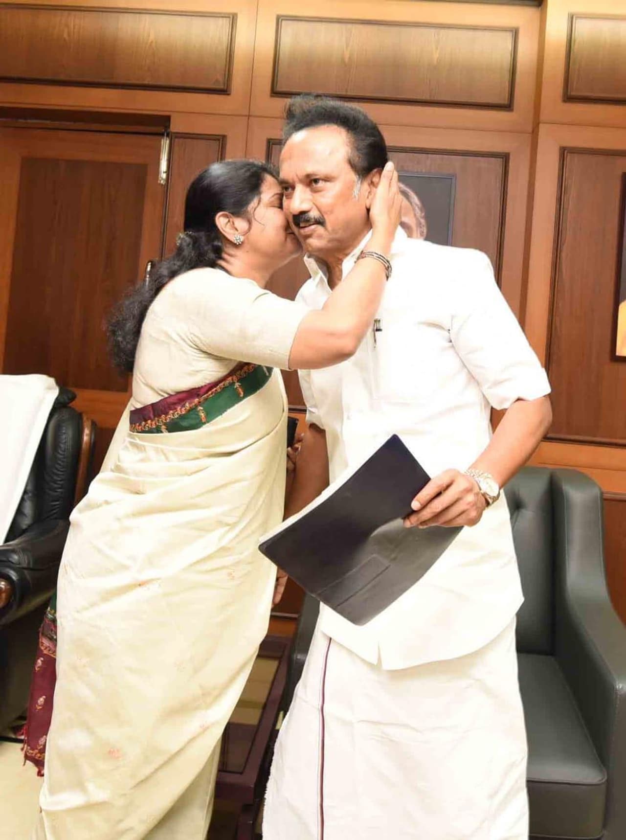 இதனையடுத்து இதையடுத்து சிஐடி காலனியில் உள்ள வீட்டிலிருந்து அண்ணா அறிவாலயத்துக்கு வந்த கனிமொழி தந்தைக்குப் பிறகு திமுகவிற்கு தலைவராகும் தனது அன்பு அண்ணன் ஸ்டாலினுக்கு பாச முத்தமிட்டு தனது பாசத்தை வெளிபடுத்தினார். ஸ்டாலினுக்கு நெருக்கடி கொடுப்பார் என பெரிதும் எதிர்பார்த்து காத்திருந்தவர்களுக்கு இந்த புகைப்படம் பதில் சொல்லிவிட்டது. திமுக வரலாற்றில் பெரும் திருப்புமுனையையும் ஏற்படுத்திவிட்டது.