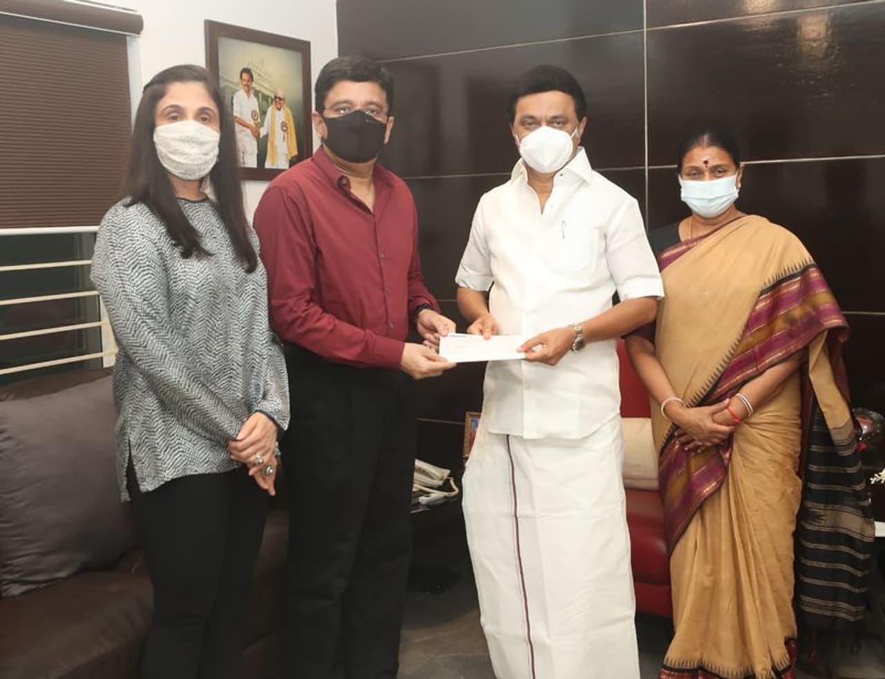 திரையுலகைப் பொறுத்தவரை நடிகர்கள் சூர்யா, கார்த்தி, சிவக்குமார், அஜித், சிவகார்த்திகேயேன், ஜெயம் ரவி, இயக்குநர்கள் வெற்றிமாறன், ஷங்கர் மற்றும் ரஜினியின் இளைய மகளான செளந்தர்யா ரஜினிகாந்த் உள்ளிட்ட பலரும் லட்சங்களை வாரி வழங்கி வருகின்றனர். தற்போது கன்னியாகுமரி மக்களவை எம்.பி.யும், நடிகருமான விஜய் வசந்த் கொரோனா நிதியாக ரூ.25 லட்சம் வழங்கியுள்ளார். சென்னையில் உள்ள தலைமைச் செயலகத்தில் முதலமைச்சர் மு.க.ஸ்டாலினை சந்தித்த விஜய் வசந்த் ரூ.25 லட்சத்திற்கான காசோலையை வழங்கினார்.