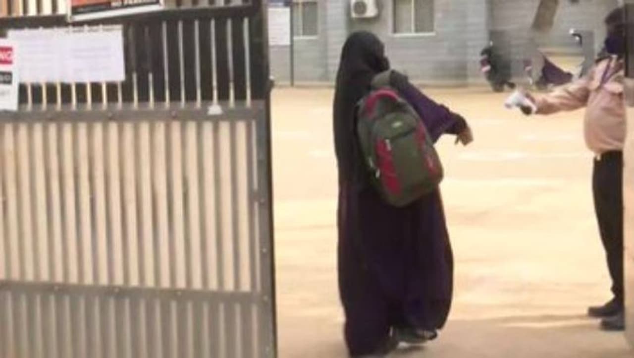 இந்த நிலையில், "பள்ளி மாணவி ஒருவர் தேர்வில் கலந்து கொள்ள சாதாரண ஆடையை அணிந்து கொண்டு வந்தார். அவர் பள்ளி சீருடையை அணியாமல், ஹிஜாப் அணிந்து இருந்தார். நாங்கள் அவரிடம் உயர் நீதிமன்ற உத்தரவை பின்பற்றுமாறி ஆலோசனை வழங்கினோம். பின் அவர் தனது உடையை மாற்றிக் கொண்டு வந்து பரிட்சை எழுதினார்," என மூத்த அரசு அதிகாரி தர்வாத் மோகன் குமார் தெரிவித்தார்.