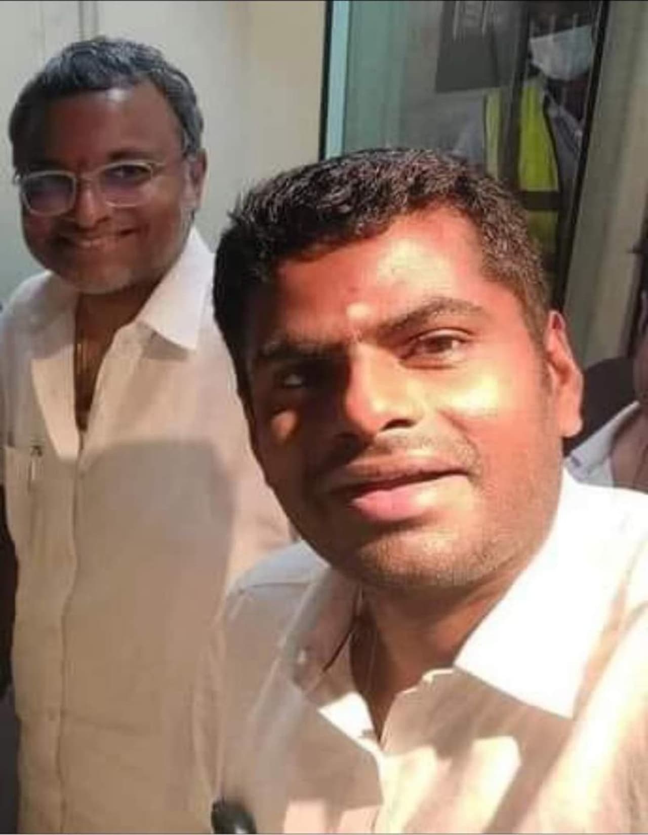 இந்நிலையில்தான் விமானநிலையத்தில் அண்ணாமலையும்- கார்த்தி சிதம்பரமும் நேருக்குநேர் சந்தித்துக் கொண்டனர், அப்போது பாஜக மாநில தலைவர் அண்ணாமலை கார்த்தி சிதம்பரத்துடன் செல்பி எடுத்துக்கொண்டார், தற்போது அந்த புகைப்படம் சமூக வலைதளங்களில் வைரலாகி வருகிறது. ஆனால் இந்த புகைப்படத்தை பார்ப்பவர்கள் ஆச்சரியம் அடைந்து வருகின்றனர், அரசியலில் எதிர் எதிர் துருவங்களில் இருப்பவர்கள் இப்படியுமா இருக்க முடியும்? அரசியலில் என்ன நடக்கிறது என்று பலரும் ஆச்சரியமாக கேள்வி எழுப்பி வருகின்றனர். இன்னும் சிலர் பா சிதம்பரம் வீட்டிலேயே பாஜக கை வைத்து விட்டதா என்றும் சந்தேகம் எழுப்பி வருகின்றனர்.