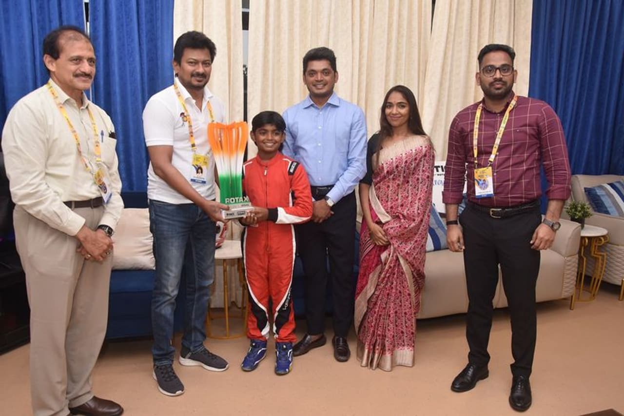 கார்டிங் ரேஸ் போட்டிகளில் இந்திய அளவிலான போட்டிகளில் சாதனை படைத்தவரும், பஹ்ரைனில் உள்ள சாகிர் இன்டர்நேஷனல் எஃப்1 சர்க்யூட்டில் நடைபெறும் உலக கார்டிங் சாம்பியன்ஷிப் இறுதிப் போட்டியில் நாட்டின் சார்பில் கலந்துகொள்ளவுள்ள விளையாட்டு வீரர், மரியாதை நிமித்தமாக தமிழகவிளையாட்டுத்துறை அமைச்சர் திரு உதயநிதி ஸ்டாலினை சந்தித்து வாழ்த்துப் பெற்றார்.