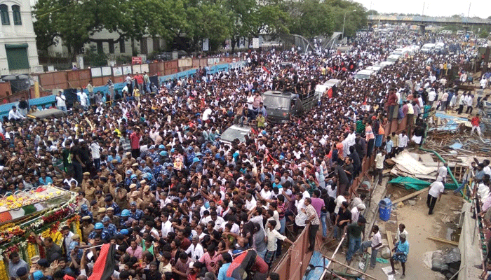 ஜெயலலிதா உடலுக்கு அஞ்சலி செலுத்த வந்தவர்கள் தொடர்பான காட்சிகள் மட்டுமே செய்தியில் ஒளிபரப்பானது. ஸ்டாலின் அஞ்சலி செலுத்திய போது மட்டுமே நேரலை செய்யப்பட்டது. ஜெயலலிதாவின் உடல் அடக்கம் செய்யப்பட்ட போது கூட கலைஞர் செய்திகள் தொலைக்காட்சியில் நேரலை செய்யப்படவில்லை. ஆனால் இதற்கு நேர்மாறாக ஜெயலலிதாவால் தொடங்கப்பட்ட ஜெயா பிளஸ் தொலைக்காட்சியில் கலைஞரின் இறுதி அஞ்சலி மற்றும் இறுதிச்சடங்ககுள் தொடர் நேரலையாக ஒளிபரப்பாகின.