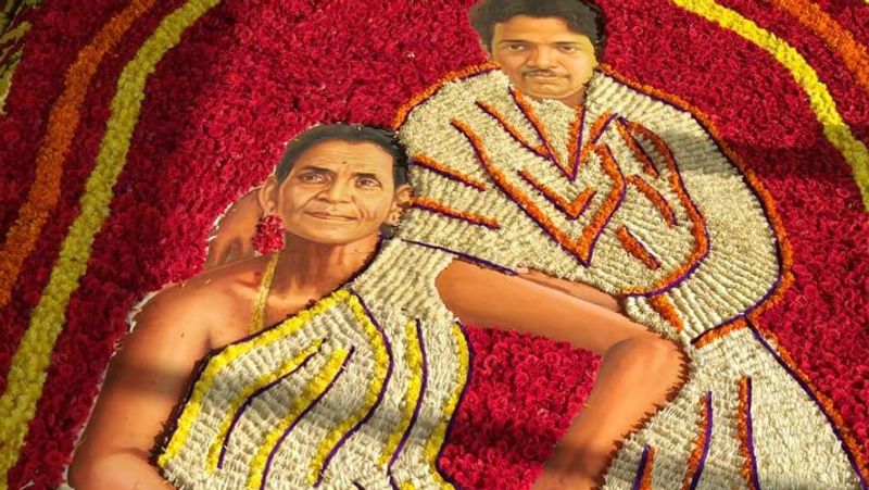 மேலும், கருணாநிதி மற்றும் அவரது தாயார் அஞ்சுகம் அம்மாள் இணைந்திருப்பது போன்றும் அவரது சமாதியில் மலர்களால் அலங்கரிக்கப்பட்டது. இதனையடுத்து திமுக தலைவர் மு.க.ஸ்டாலின் கருணாநிதியின் நினைவிடத்திற்கு சென்று மரியாதை செலுத்தினார். இதையொட்டி திமுக நிர்வாகிகள் உள்பட பல்வேறு தரப்பினர் மரியாதை செலுத்தினர்.