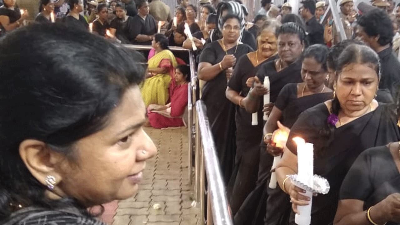 போலீசாரும் ராசாத்தி அம்மாளிடம் சென்று ஏதோ பேசினர். அதற்கு அவர் பதில் அளித்துவிட்டு மவுனமாக அமர்ந்திருந்தார். நேரம் செல்ல செல்ல பதற்றம் அதிகரித்த நிலையில், ஒரு சில தி.மு.க தொண்டர்கள் எதுவும் பிரச்சனையா என்று ராசாத்தி அம்மாளிடம் கேள்வி கேட்க ஆரம்பித்தனர். அப்போது தான் நிலைமையை உணர்ந்த ராசாத்தி அம்மாள் அங்கிருந்து புறப்பட்டுச் சென்றார். பின்னர் விசாரித்த போது தான், 16ம் நாள் காரியம் செய்த காரணத்தினால் காலையில் இருந்தே ராசாத்தி அம்மாள் அப்செட்டாக இருந்துள்ளார். இதனால் கலைஞர் நினைவிடத்தில் அமர்ந்திருந்தால் மன நிம்மதி கிடைக்கும் என்று அங்கு நாற்காலிபோட்டு அவர் அமர்ந்திருந்ததாக அவருடன் வந்திருந்த உறவினர்கள் தெரிவித்தனர்.