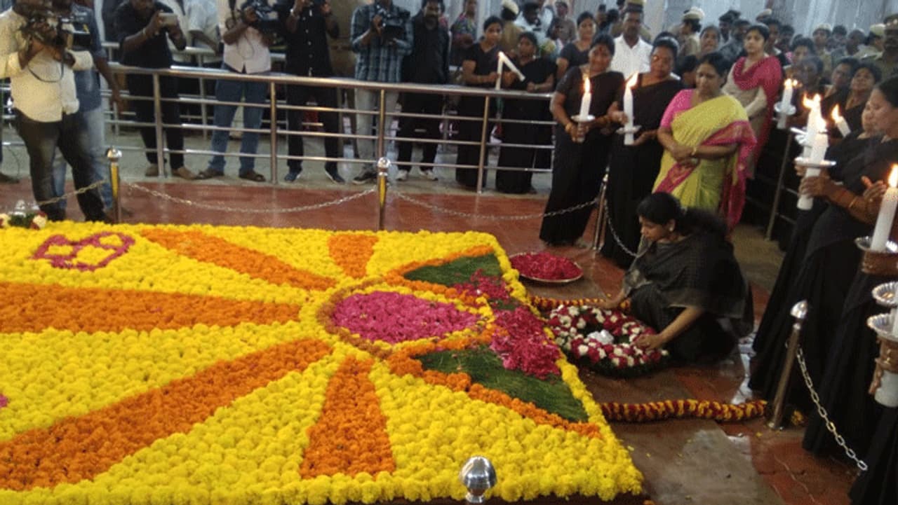 செல்வி வீட்டிலும் கலைஞர் மறைந்த 16வது நாளை முன்னிட்டு காரியம் செய்யப்பட்டுள்ளது. இதற்காகவே ஸ்டாலின் தனது குடும்பத்தினருடன் அங்கு சென்றதாக சொல்லப்படுகிறது. ஆனால் அழகிரி குடும்பத்தினர் கோபாலபுரத்தில் காரியம் முடிந்ததும் அங்கிருந்து புறப்பட்டுவிட்டனர். இதே போல் கனிமொழியின் சி.ஐ.டி காலனி இல்லத்திலும் கலைஞருக்கு 16ம் நாள் காரியம் செய்யப்பட்டது. இந்த நிலையில் தான் மாலையில் திடீரென ராசாத்தி அம்மாள் கலைஞர் நினைவிடத்திற்கு வருகை தந்தார். முதலில் அவர் கலைஞர் நினைவிடத்தில் அஞ்சலி செலுத்ததான் வந்ததாக கருதப்பட்டது. ஆனால் அஞ்சலி செய்து முடித்த ராசாத்தி அம்மாள் அங்கிருந்து புறப்படாமல் நீண்ட நேரம் நின்று கொண்டே இருந்தார். இதனால் அந்த இடம் சிறிது பரபரப்பானது. கலைஞர் நினைவிடத்தில் அஞ்சலி செலுத்த வந்த பலரும் ராசாத்தி அம்மாளை பார்த்து அங்கேயே நிற்க ஆரம்பித்தனர்.