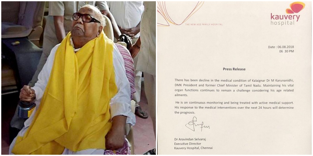 வயது முதிர்வு காரணமாக மருத்துவ சிகிச்சைக்கு ஒத்துழைக்கும் அளவுக்கு அவரது உடல் உறுப்புகளின் செயல்பாடுகள் அமைய வில்லை என்றும் அதில் கூறப்பட்டிருந்தது. அடுத்த 24 மணிநேரத்தில் மருத்துவ சிகிச்சைக்கு அவரது உடல் எப்படி ஒத்துழைக்கிறது என்பதைப் பொறுத்திருந்து பார்க்க வேண்டும் என்றும் அந்தச் செய்திக்குறிப்பு தெரிவித்தது.