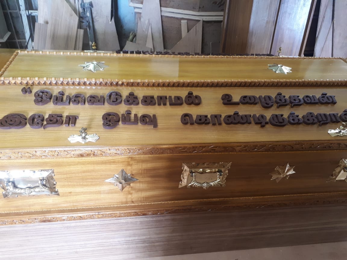 கருணாநிதி கடுமையான உழைப்பாளி. அவரது உழைப்பும் சுறுசுறுப்பும் தான் 94 வயது வரை அவரை இயக்கி கொண்டிருந்தது என்று கூறினால் மிகையாகாது. கருணாநிதி இறந்தவிட்ட நிலையில், அவரை அடக்கம் செய்வதற்கான சந்தனப்பேழை தயார் செய்யப்பட்டிருக்கிறது. அந்த புகைப்படமும் வெளியாகியுள்ளது.