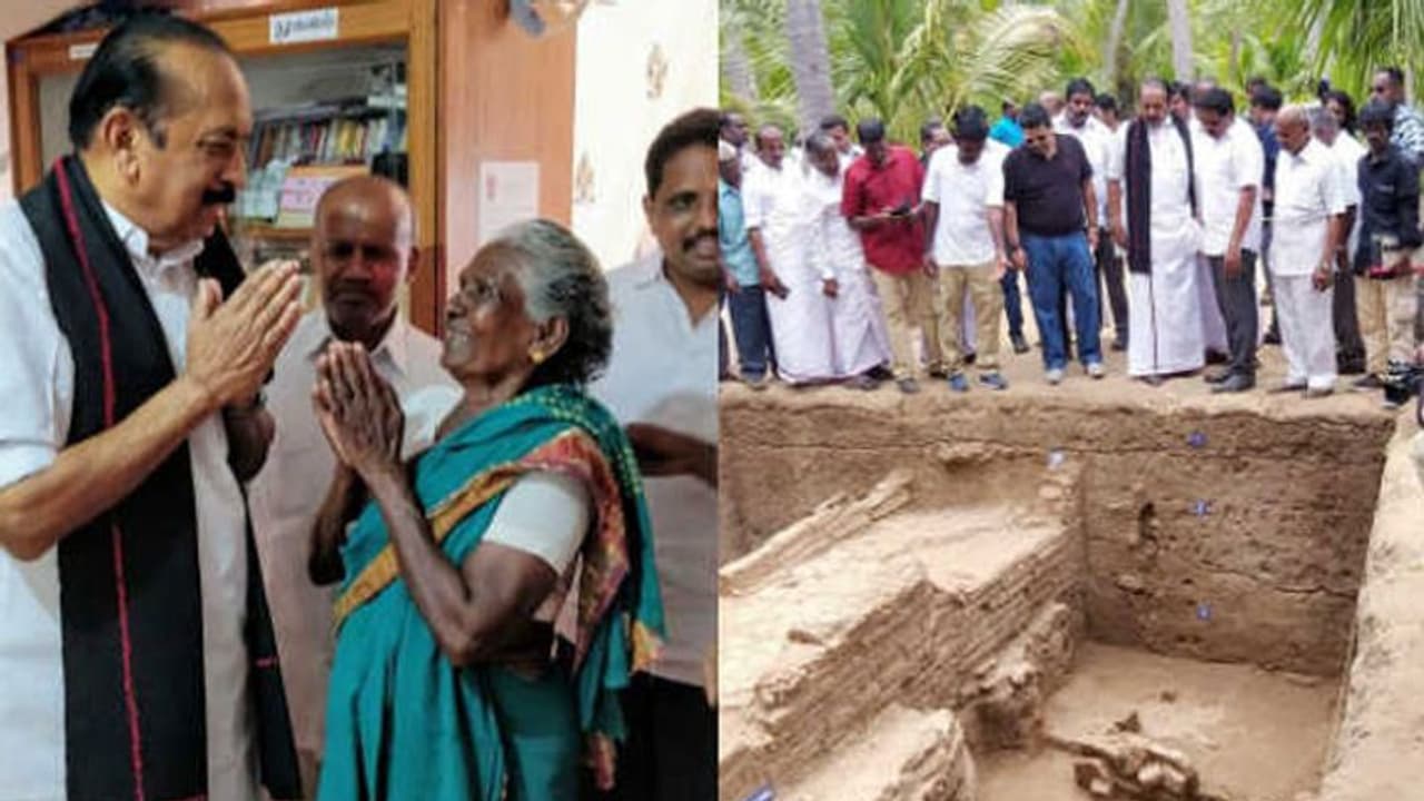 கீழடி ஆய்வுக்கு 5 ஏக்கர் நிலத்தை வழங்கிய முத்துலட்சுமி என்ற மூதாட்டியை மதிமுக பொதுச்செயலாளர் வைகோ நேரில் சந்தித்து நன்றி தெரிவித்தார்.