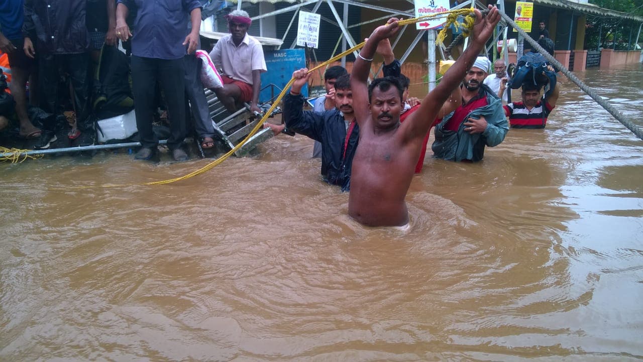 மழையால்பெரிதும்பாதிக்கப்பட்டகோழிக்கோடு, வயநாடுபகுதிகளில்போக்குவரத்துதுண்டிக்கப்பட்டஇடங்களில்இருந்துவெளியேவரமுடியாமல்தவித்தமக்களைசிறியஅளவில்தற்காலிகபாலங்களைகட்டிராணுவவீரர்கள்பாதுகாப்பாகமீட்டுமுகாம்களில்தங்கவைத்தனர்.