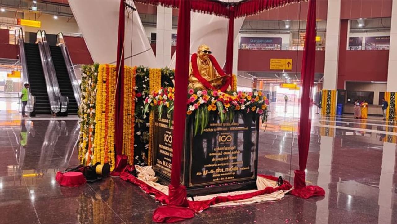 மற்றவர்கள் செய்த பணிகளை ஸ்டிக்கர் ஓட்டி தங்கள் பணிகளாக காட்டுவதில் முனைப்பு காட்டும் திராவிட மாடல் திமுக அரசு இந்த பேருந்து நிலையத்திற்கும் கலைஞர் நூற்றாண்டு பேருந்து முனையம் என பெயரிட்டு அவசர கதியில் திறந்து வைத்துள்ளது.