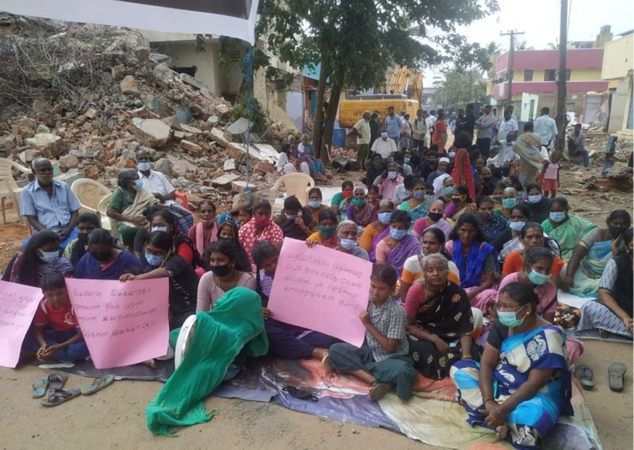 சென்னை கொளத்தூர் பகுதி, அவ்வை நகர் முதலாவது குறுக்குத்தெரு பகுதியில் அமைந்துள்ள குடியிருப்புகள் மற்றும் கடைகள் மேம்பாலம் பணிகளுக்காக நிலம் கையகப்படுத்துவதாககூறி அரசு அளித்த வாக்குறுதிகளை மீறி முழுவதும் இடிக்கப்பட்டுள்ளது.