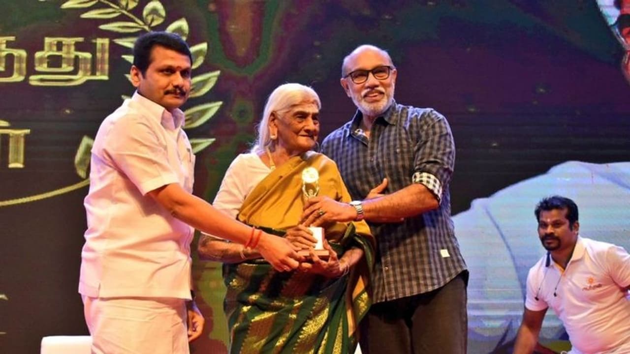 இந்நிகழ்ச்சியில் பேசிய நடிகர் சத்யராஜ், ‘விருது பெற்றவர்கள் நாங்கள் பெரிய ஆள் என காலில் விழுந்தார்கள், நான் அவர்களில் காலில் விழுந்தது சந்தோஷமாக இருந்தது. வயதானவர்களின் காலில் விழுந்தால் தவறில்லை. உங்களுக்கு பொழுதுபோக்கு கொடுத்தாலும் நடிகராகிய எங்கள் காலில் விழுவதற்கான தகுதி எங்களிடம் இல்லை. எள் என்பதற்கு முன் எண்ணையாக நிற்பார் அமைச்சர் செந்தில்பாலாஜி என அனைவராலும் பாரட்டப்படுகிறார்.
