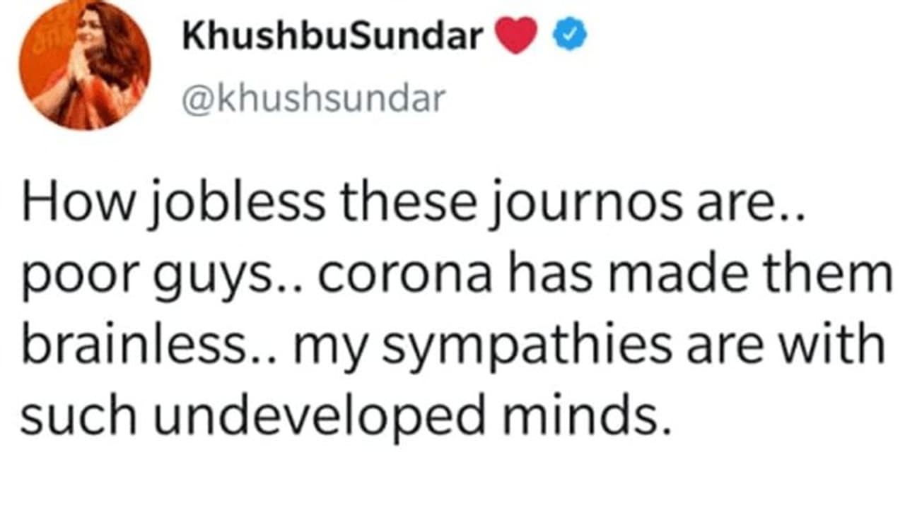 ஆனால் உண்மை அம்பலமாகிவிட்ட அதிர்ச்சியில் குஷ்பு தன்னிலை மறந்து கொதிப்பது எங்கப்பன் குதிருக்குள் இல்லை என்பது போல் அவர் பாஜகவுடன் பேசுவது 100 சதவீதம் உண்மை என்பது போல் ஆகிவிட்டது. இனியாவது குஷ்பு பொதுவெளியில் பத்திரிகையாளர்கள் பற்றி வார்த்தையை சரியாக பயன்படுத்துவார் என்று நம்புகிறோம்.