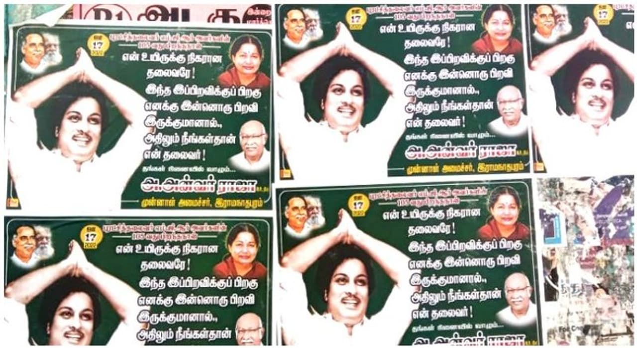 அதிமுக நிறுவனரான எம்ஜிஆரின் 105-வது பிறந்த நாள் நாளை (ஜனவரி 17) கொண்டாடப்பட உள்ளன. எம்.ஜி.ஆர். பிறந்த நாளைக் கொண்டாட அதிமுக, அமமுக சார்பில் ஏற்பாடுகள் செய்யப்பட்டுள்ளன. இந்நிலையில், அதிமுகவில் இருந்து நீக்கப்பட்ட அன்வர் ராஜா, அக்கட்சிக் கொடியின் கலரை பயன்படுத்தி நோட்டீஸ் அடித்து ஒட்டியுள்ளார். அந்த போஸ்டரில், ‘என் உயிருக்கு நிகரான தலைவரே; இந்த பிறவிக்குப் பிறகு இன்னொரு பிறவி இருக்குமானால், அதில் நீங்கள்தான் என் தலைவர்’ என அன்வர் ராஜா பெயரில் ராமநாதபுரம் முழுவதும் ஒட்டப்பட்டுள்ள போஸ்டரால் அதிமுக தொண்டர்கள் மத்தியில் பரபரப்பு ஏற்பட்டுள்ளது.