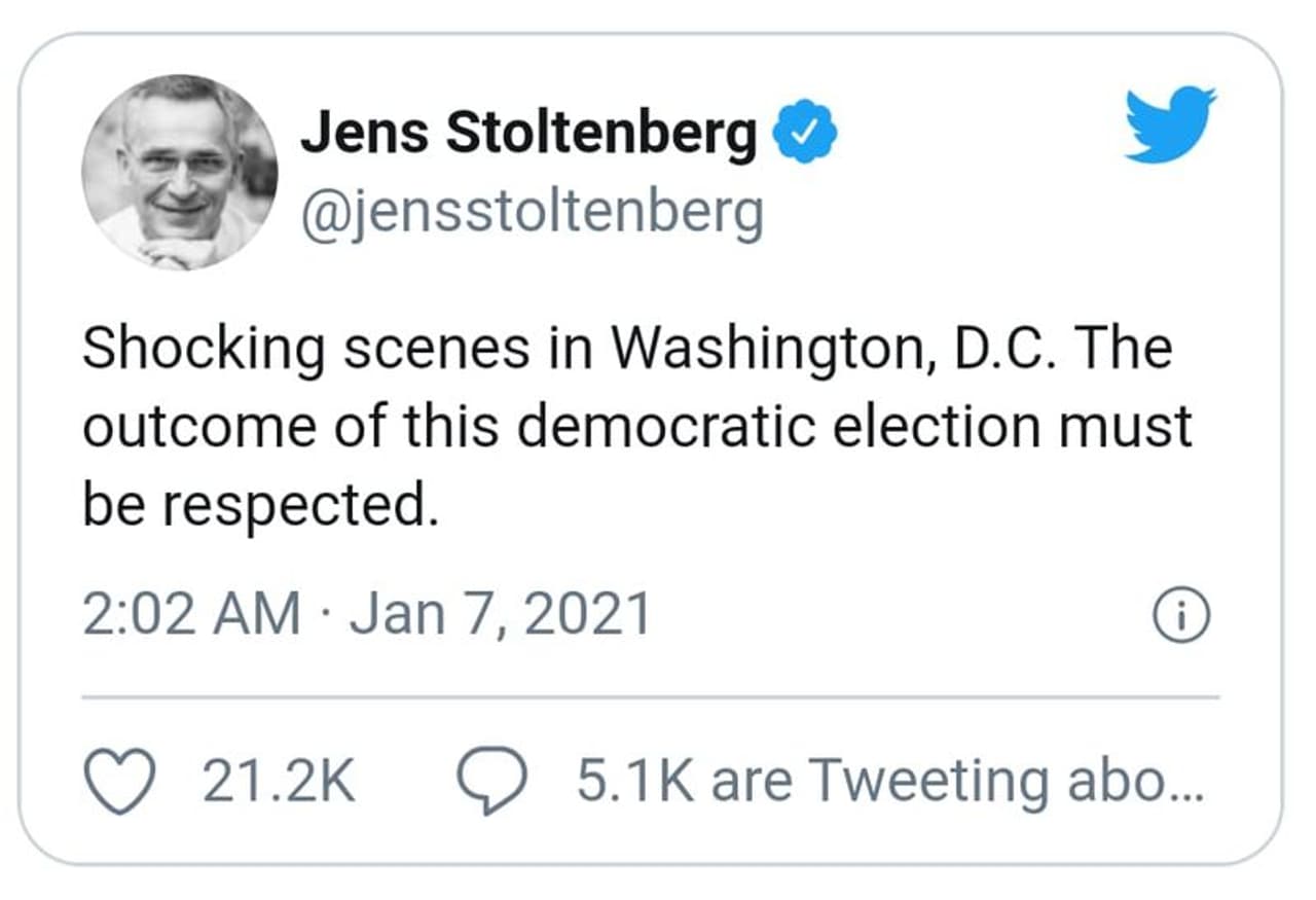 இந்த ஜனநாயக தேர்தலில் முடிவு மதிக்கப்பட வேண்டும் என்று நோட்டோ தலைவர் ஜென்ஸ் ஸ்டோல்டன் பெர்க் தனது ட்விட்டர் பக்கத்தில் பதிவிட்டுள்ளார்.