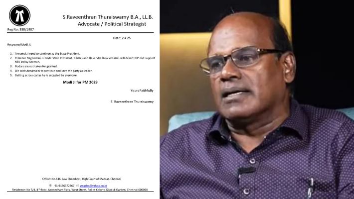 தமிழகத்தில் பிரபல பத்திரிகையாளராகவும், அரசியல் விமர்சகராகவும் உள்ளார் ரவீந்திரன் துரைசாமி. ஊடகத் துறை மற்றும் பத்திரிகைத் துறையில் தொடர்ந்து இயங்கி வரும் ரவீந்திரன் துரைசாமி தற்போது பிரதமர் நரேந்திர மோடிக்கு கடிதம் ஒன்றை எழுதியுள்ளார். அந்த கடிதத்தின் முக்கியமான அம்சங்கள் பின்வருமாறு, “அண்ணாமலை தொடர்ந்து மாநிலத் தலைவராக இருக்க வேண்டும்.