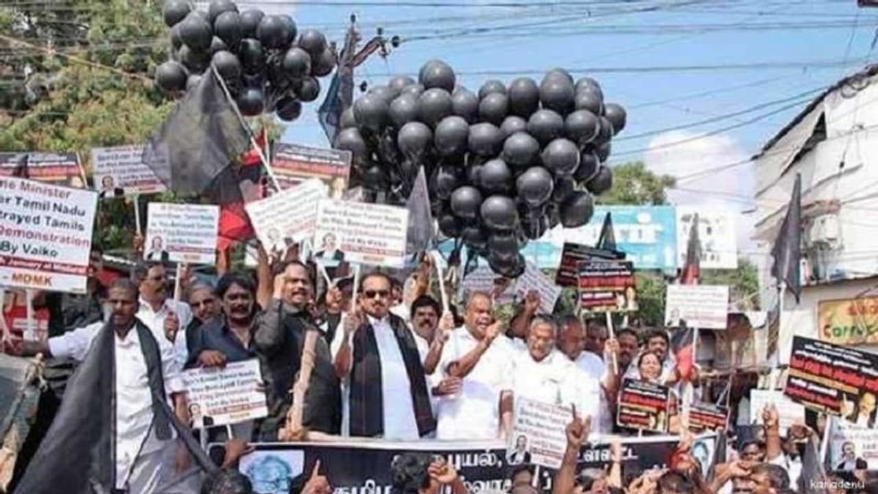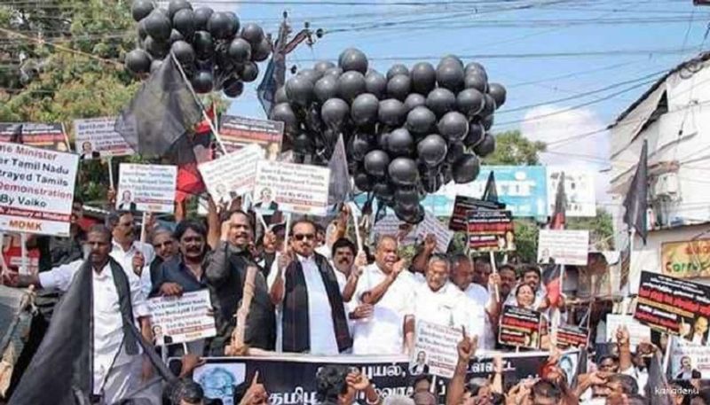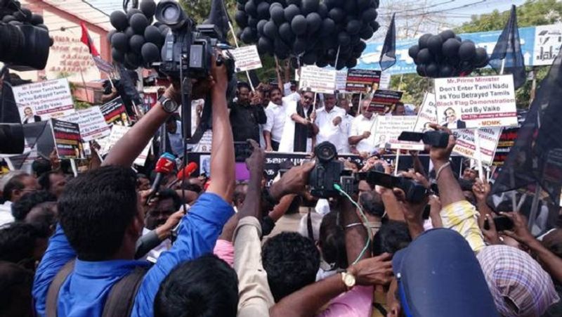 பிரதமர் மோடி மதுரையில் எய்ம்ஸ் மருத்துவமனைக்கு அடிக்கல் நாட்டுவதற்காக வருகை தந்தார். இதனைத் தொடர்ந்து திருப்பூரில் நலத்திட்டங்களை தொடங்கி வைப்பதற்காக வந்தார் இந்த இரு நிகழ்வுகளின்போதும் மதிமுக சார்பில் பிரதமருக்கு கருப்பு கொடி காட்டப்பட்டது. அக்கட்சியின் பொதுச் செயலாளர் வைகோ தலைமையில் கருப்புக் கொடி ஆர்ப்பாட்டம் நடைபெற்றது. மேலும் கருப்பு பலூன்களும் பறக்கவிடப்பட்டன.