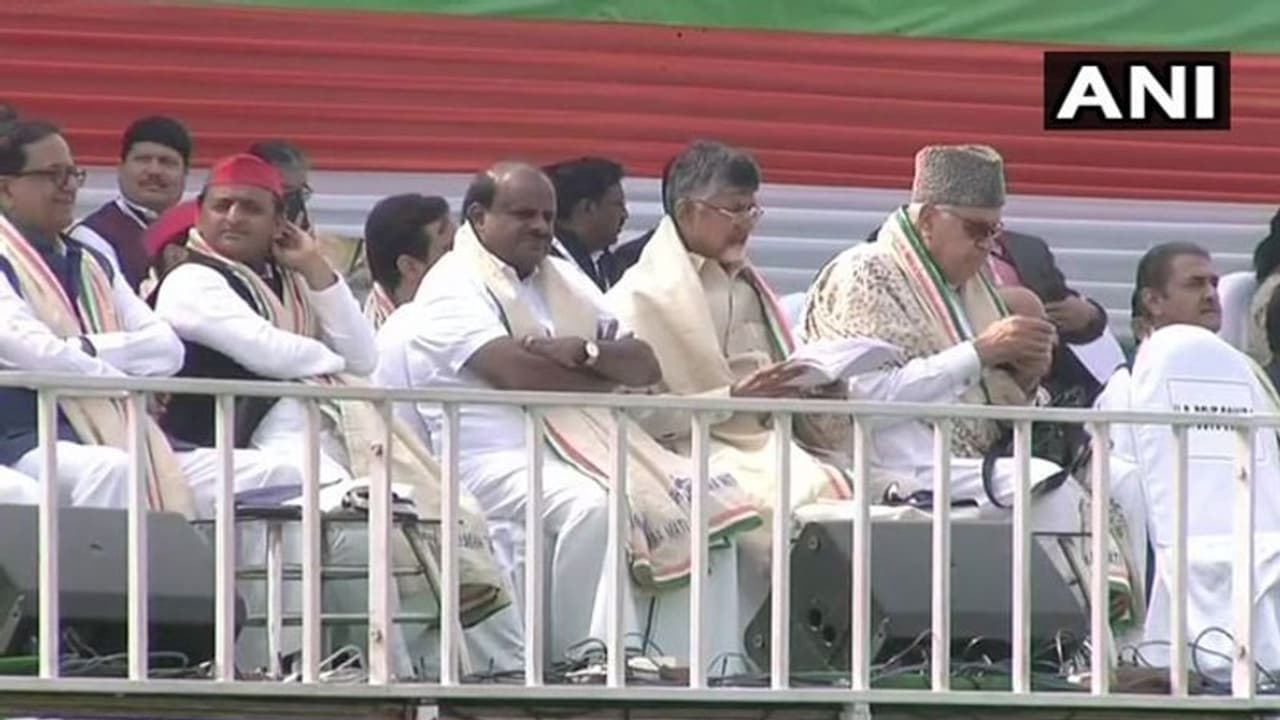மேற்கு வங்க மாநிலம் கொல்கத்தாவில் மம்தா பானர்ஜி நடத்தும் பேரணியில் முன்னாள் பிரதமர் தேவகவுடா, தி.மு.க. தலைவர் மு.க.ஸ்டாலின், சந்திரபாபு நாயுடு உள்ளிட்ட 22 கட்சிகளின் தலைவர்கள் பங்கேற்றுள்ளனர்.