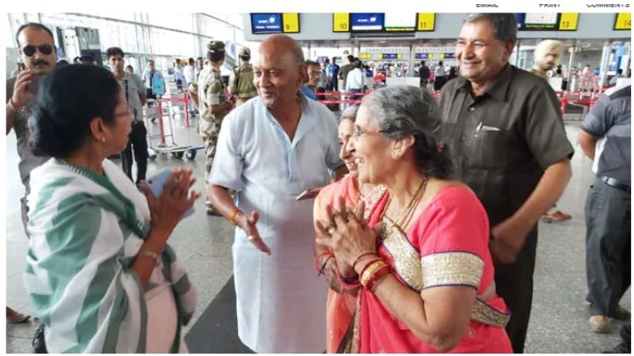 டெல்லிக்கு செல்வதறாகாக கொல்கத்தா விமான நிலையம் வந்த மம்தா பானர்ஜி அங்கு பிரதமர் மோடியின் மனைவி ஜசோதா பென்னை நேரில் சந்தித்து நலம் விசாரித்தார்.