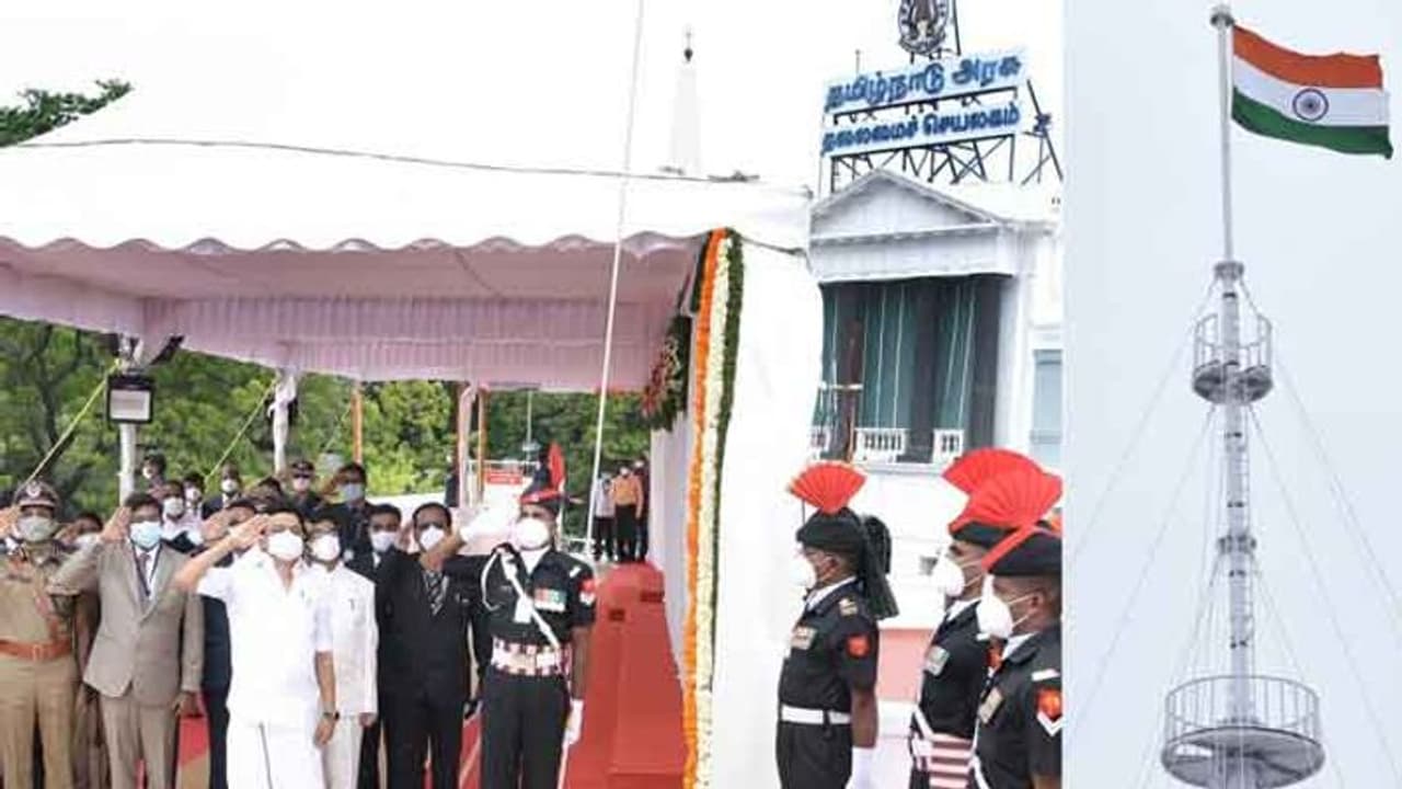 75-வது இந்திய சுதந்திர தினத்தை முன்னிட்டு, தமிழக முதல்வர் மு.க.ஸ்டாலின் முதல் முறையாக சென்னை கோட்டை கொத்தளத்தில் தேசியக்கொடி ஏற்றி மரியாதை செலுத்தினார். அப்போது, அவர் உரையாற்றிகையில்;- இன்று சுதந்திர தினத்தில் தேசியக் கொடியேற்ற எனக்கு வாய்ப்பு கிடைதத்தில் மகிழ்ச்சி. மாநிலங்களில் மாநில முதல்வர்கள் சுதந்திர தினத்தன்று தேசியக் கொடியேற்றும் இந்த சுதந்திரத்தை வாங்கிக் கொடுத்தவர் கருணாநிதி. இந்தக் கோட்டையில் முதல்வராகக் கொடியேற்றினார் கருணாநிதி. தமிழக முதல்வர்களுக்கு மட்டுமல்லாது இந்தியாவில் அனைத்து முதல்வர்களுக்கும் அவர் அந்த சுதந்திரத்தைப் பெற்றுத் தந்தவர்.