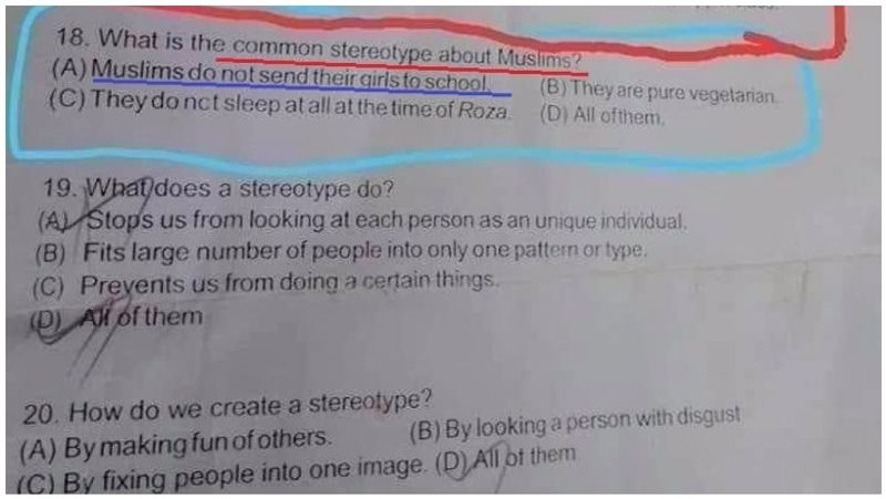 மத்திய அரசின் கீழ் செயல்பட்டு வரும் கேந்திரிய வித்யாலயா பள்ளிகள் நாடு முழுவதும் அனைத்து மாநிலங்களிலும் செயல்பட்டு வருகின்றன. இந்நிலையில், கேந்திரிய வித்யாலயாவின் 6ம் வகுப்பு சமூக அறிவியல் பாடப்புத்தகத்தில் இடம்பெற்றிருக்கும் குறிப்பிட்ட ஒரு பக்கம் சமூகவலைதளங்களில் அதிகமாக பகிரப்பட்டது. அதில், தலித் என்றால் யார் என்ற கேள்விக்கு சரியான பதில் ''தீண்டத்தகாதவர்கள்'' என்று கொடுக்கப்பட்டு இருக்கிறது. அதேபோல, பொதுவாக முஸ்லிம்களின் பண்பு என்ன என்ற ஒரு கேள்வி கேட்கப்பட்டுள்ளது. அந்தக் கேள்விக்கு 1) முஸ்லிம்கள் பெண்களை பள்ளிக்கு அனுப்ப மாட்டார்கள், 2) அவர்கள் சைவ உணவு பழக்கத்தினர், 3) அவர்கள் நோன்பு இருக்கும் காலங்களில் எப்போதும் தூங்குவதில்லை, 4) இவையனைத்தும் என நான்கு தெரிவுகள் கொடுக்கப்பட்டிருந்தன.