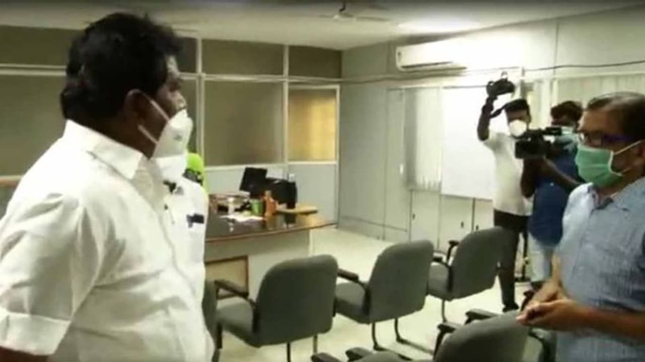 கொரோனா பரவலைக் கருத்தில் கொண்டு 30 சதவீத பணியாளர்கள் மட்டுமே அலுவலகத்தில் வேலை பார்க்க அனுமதிக்கப்பட்டுள்ளனர். அப்படியிருந்தும் அமைச்சர் ஆய்வு நடத்திய அலுவலக வேலை நேரமான 10 மணிக்கு கூட சொற்ப அளவிலான ஊழியர்கள் மட்டுமே பணிக்கு வந்துள்ளனர். மீதமிருந்த பெரும்பாலான ஊழியர்கள் காலதாமதமாகவே பணிக்கு வந்துள்ளனர். இதனை கண்காணித்த அமைச்சர் வணிக வரித்துறை இணை ஆணையரை வெளுத்து வாங்கியுள்ளார்.