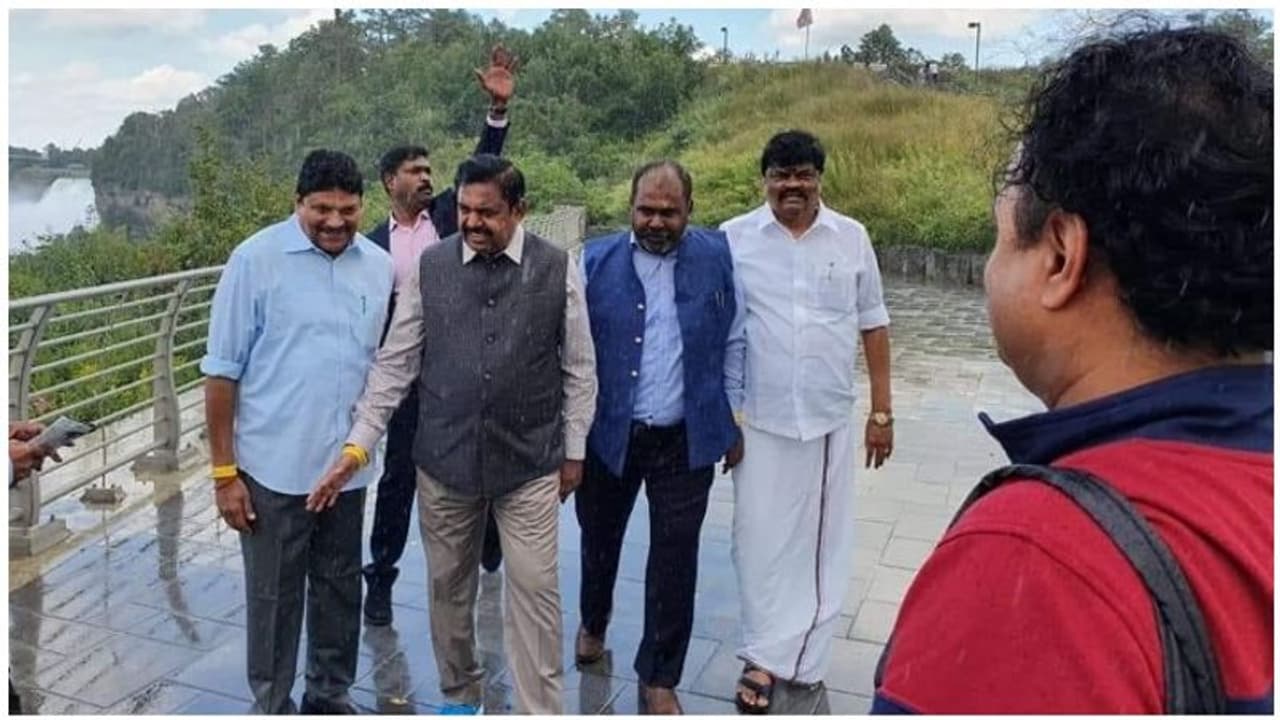 இதனையடுத்து அமைச்சர்கள் ராஜேந்திர பாலாஜி, ஆர்.பி.உதயகுமார் ஆகியோரும் சென்னையில் இருந்து அமெரிக்கா புறப்பட்டு சென்று எடப்பாடியுடன் கலந்து கொண்டனர். ஆனால் ஆர்.பி.உதயகுமார் மட்டுமே கோட்டு சூட்டு அணிந்து எடப்பாடியுன வலம் வந்தார். ராஜேந்திர பாலாஜி எப்போதும் போல அதிமுக கரை வேட்டி, வெள்ளை முழுக்கை சட்டையை மடித்துவிட்டப்படி இருந்தார். அவர் பங்கேற்ற நிகழ்ச்சிகளிலும் வேட்டி, சட்டையிலேயே வலம் வந்தார். நயாகரா நீர்வீழ்ச்சியை ரசித்து பார்த்த அவர், அப்போது போட்டோவுக்கு போஸ் கொடுத்தார்.