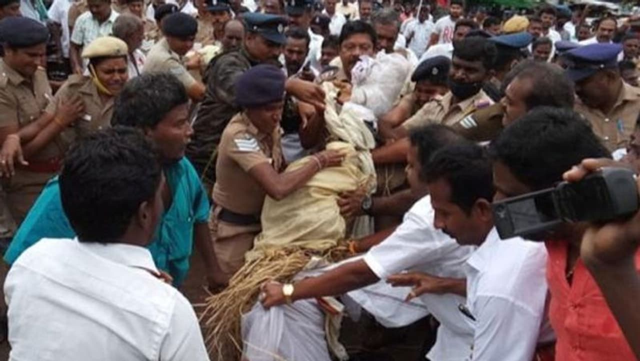 இதே போல் ஸ்ரீவில்லிபுத்தூரில் ராஜேந்திர பாலாஜிக்கு எதிர்ப்பு தெரிவிக்கும் வகையில் உருவ பொம்மையை எரிக்க முயன்றவர்களை போலீசார் பிடித்து அழைத்துச் சென்றனர். விருதுநகரிலும் ராஜேந்திர பாலாஜிக்கு எதிர்ப்பு தெரிவிக்கும் வகையில் திமுகவினர் பேரணியாக சென்று அவரது உருவபொம்மையை எரித்தனர். காரியாப்பட்டி எனும் பகுதியிலும் கூட திமுகவினர் அமைச்சருக்கு எதிராக போர்க்கோளம் பூண்டனர். போதாக்குறைக்கு ராஜேந்திர பாலாஜி உருவ பொம்மையை எரிக்க முயன்ற போது திமுக தொண்டர் ஒருவர் மீது தீ பற்றியது.