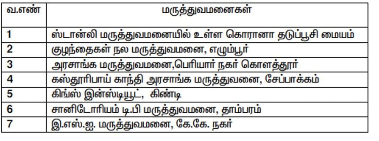 சென்னையிலுள்ள ராஜீவ்காந்தி அரசு பொது மருத்துவமனை, ஓமந்தூரார் பன்னோக்கு உயர் சிறப்பு மருத்துவமனை, கீழ்ப்பாக்கம் அரசு மருத்துவமனை மற்றும் தண்டையார்பேட்டை தொற்று நோய் அரசு மருத்துவமனை ஆகிய மருத்துவமனைகளில் உள்ளது போல, தொடர் மின் சுற்று கருவி (Ring Main Unit) கீழ்கண்ட 7 மருத்துவமனைகளில் கூடுதலாக அமைக்கப்பட்டுள்ளது.